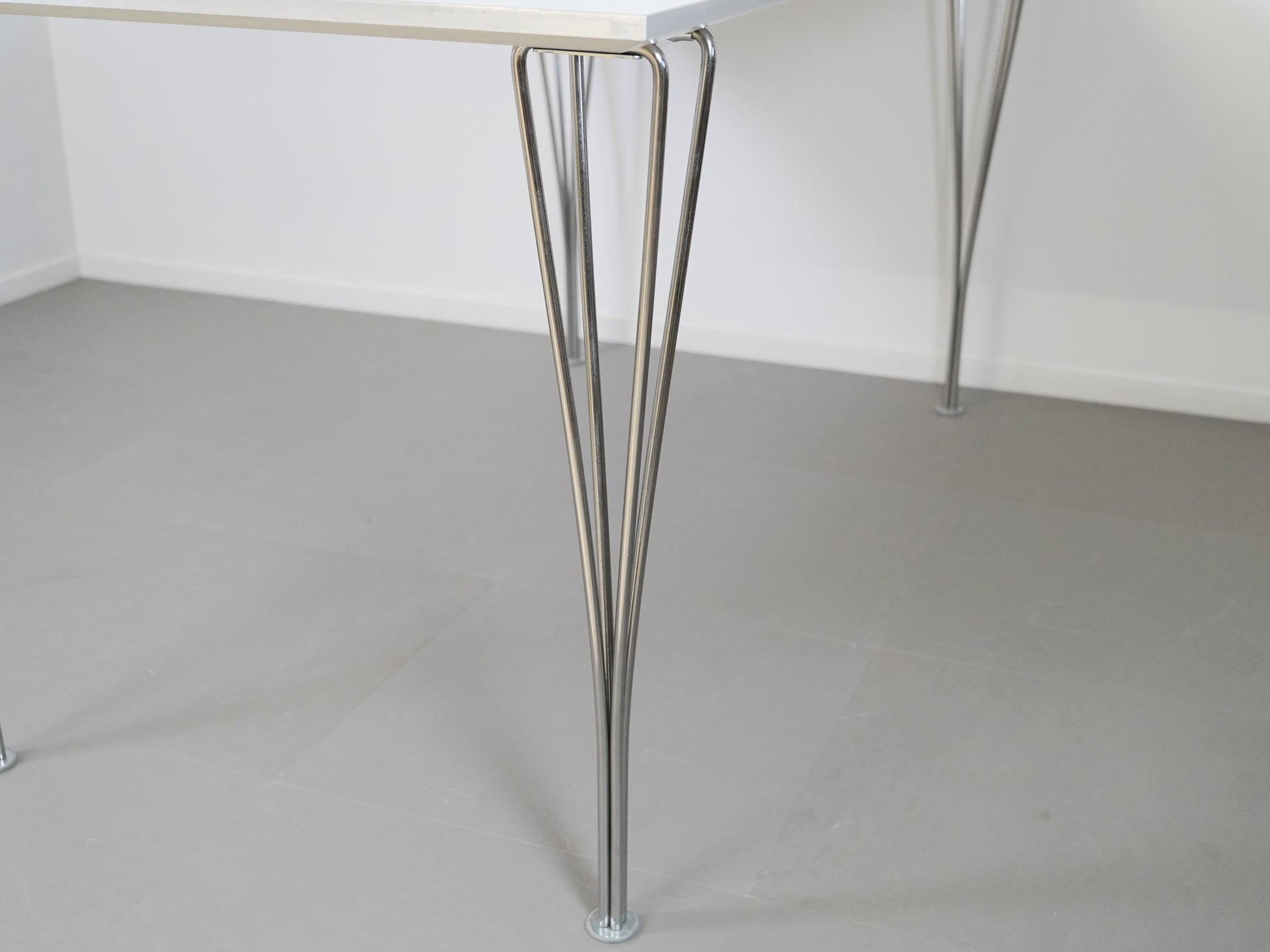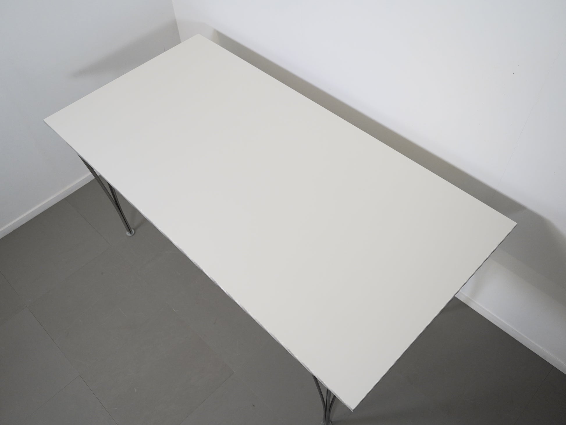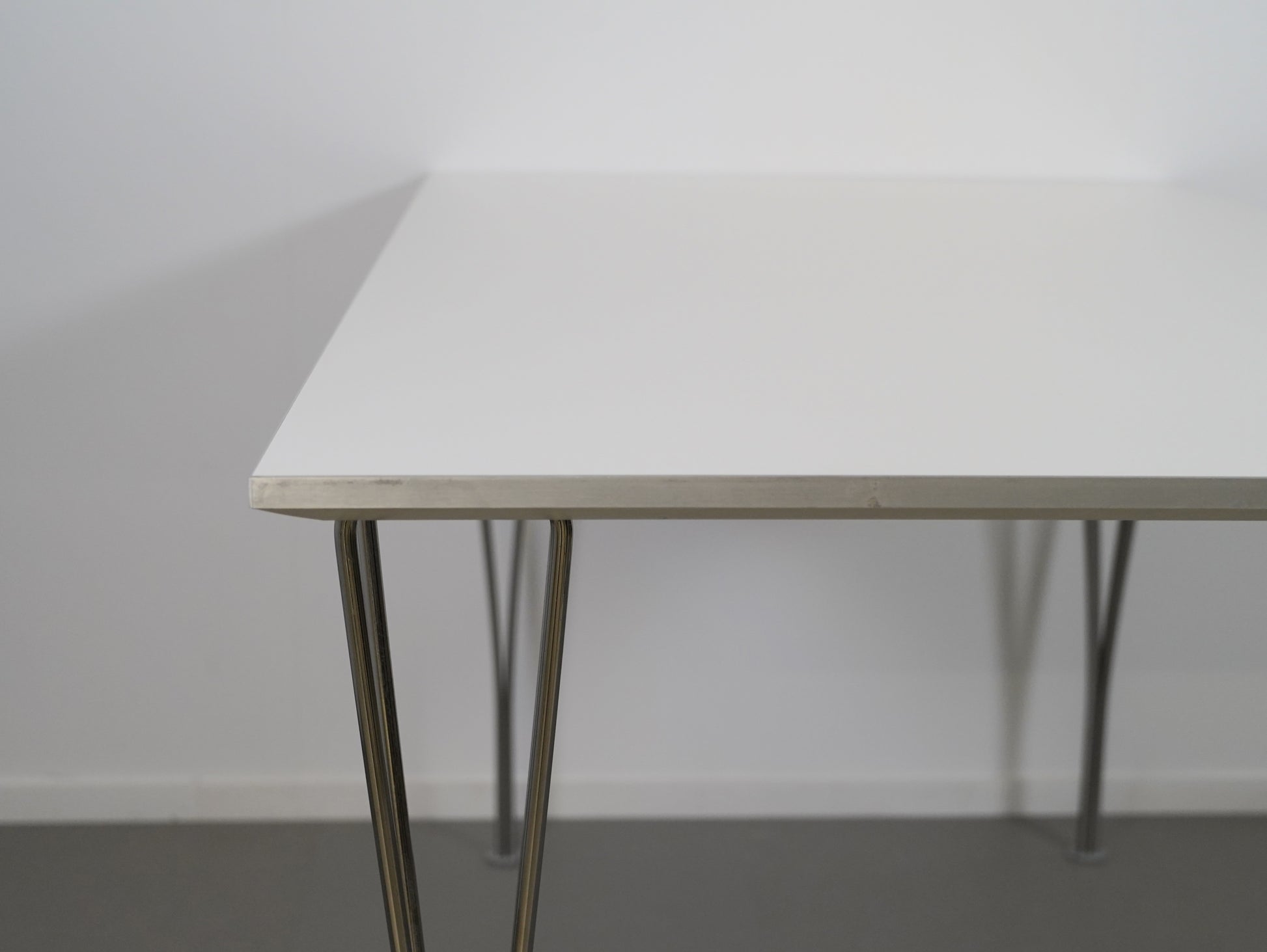 ピート・ハイン、ブルーノ・マットソン、アルネ・ヤコブセンの共作として知られる、フリッツハンセンのBテーブルシリーズ。今回紹介するのは、2010年製のモデルで、幅160cmのホワイト天板、高さは72cmのタイプです。
