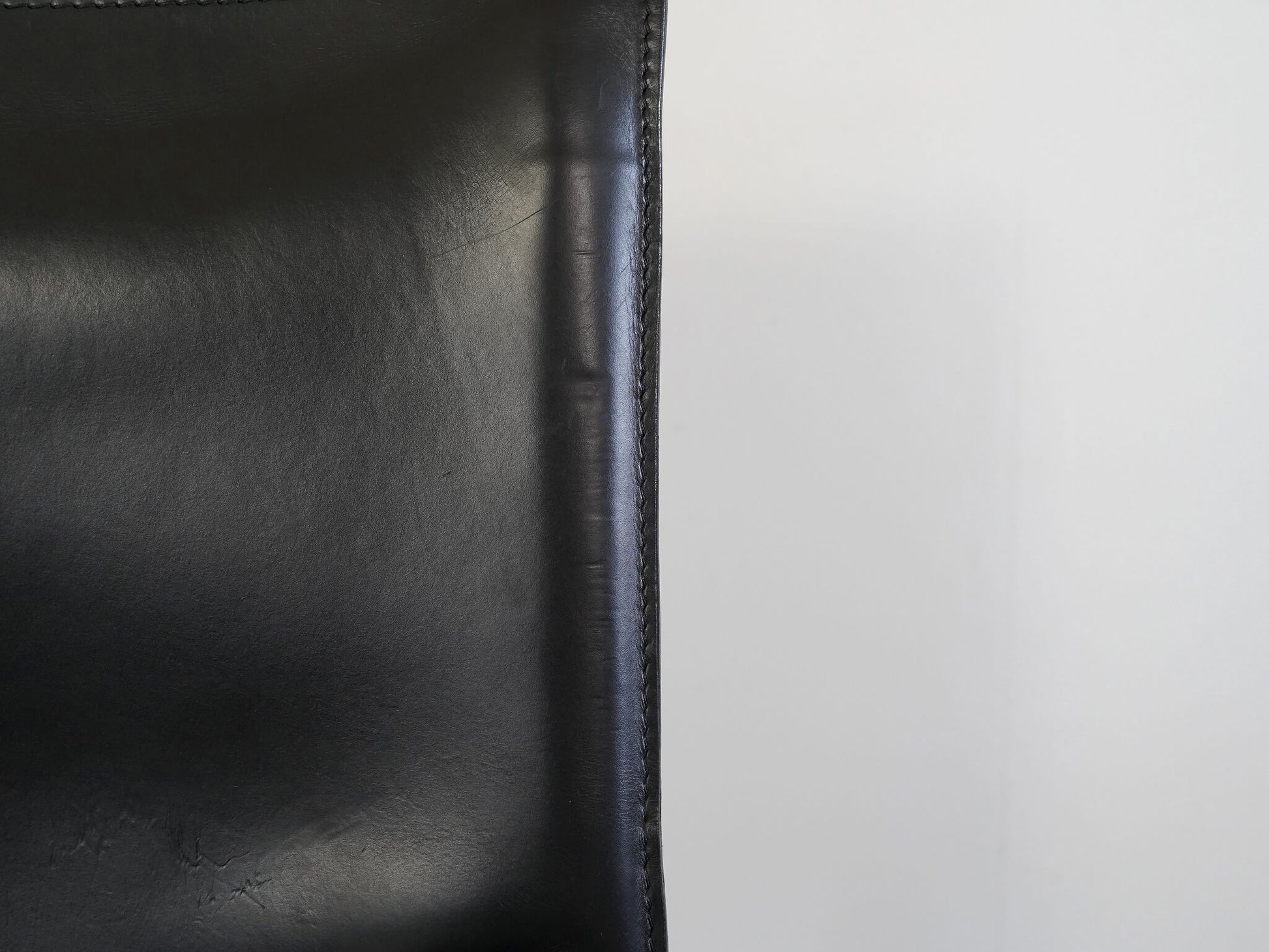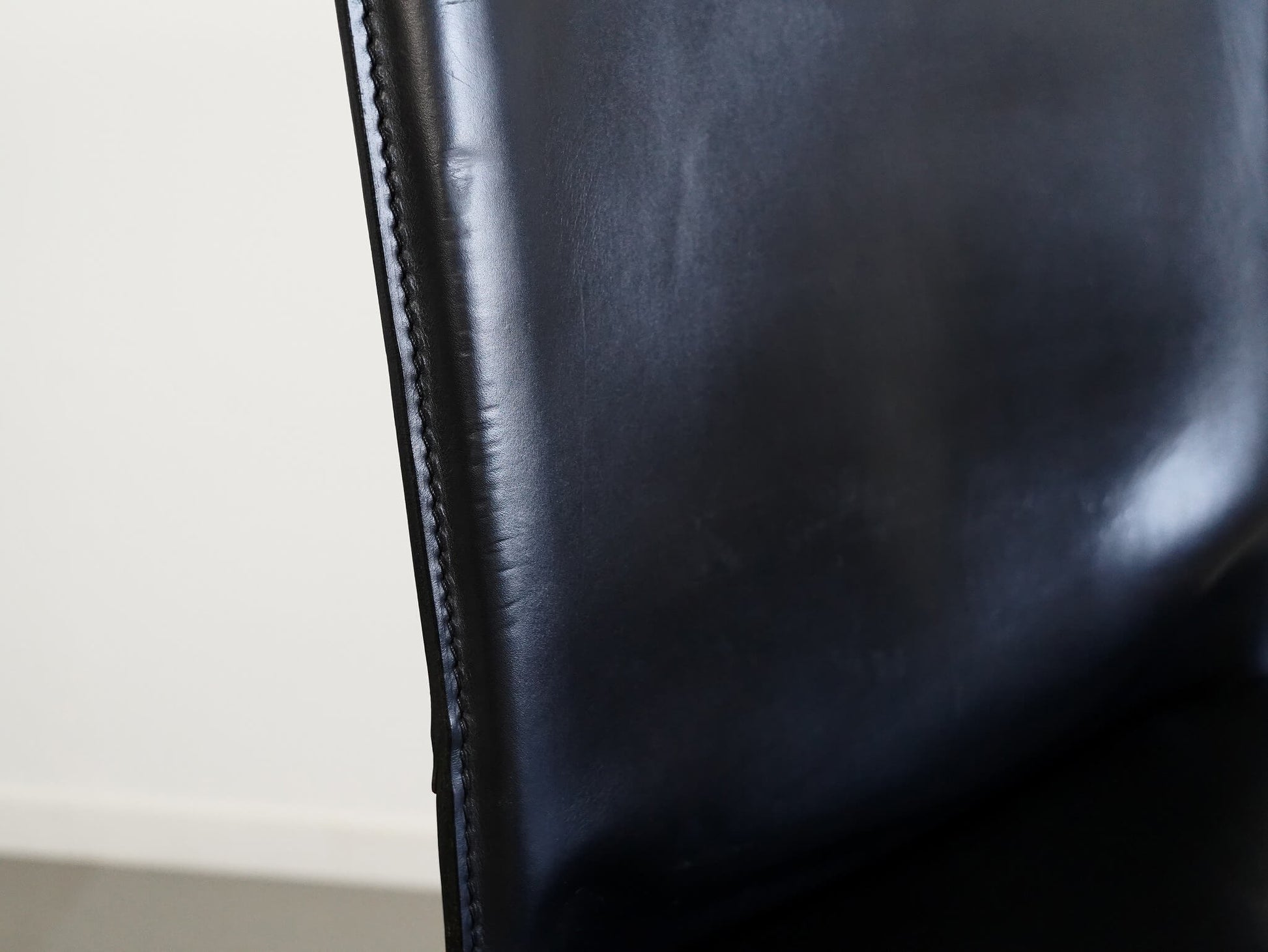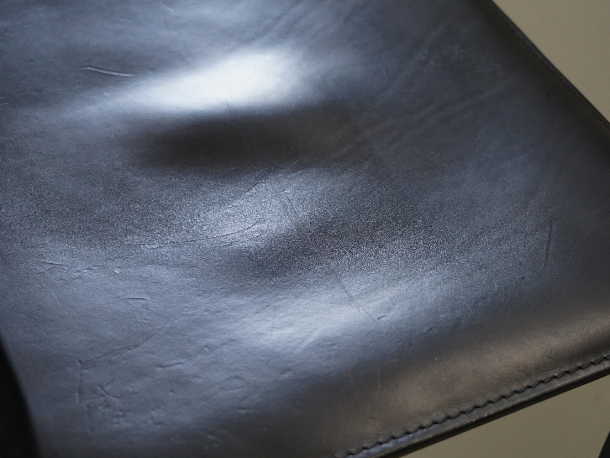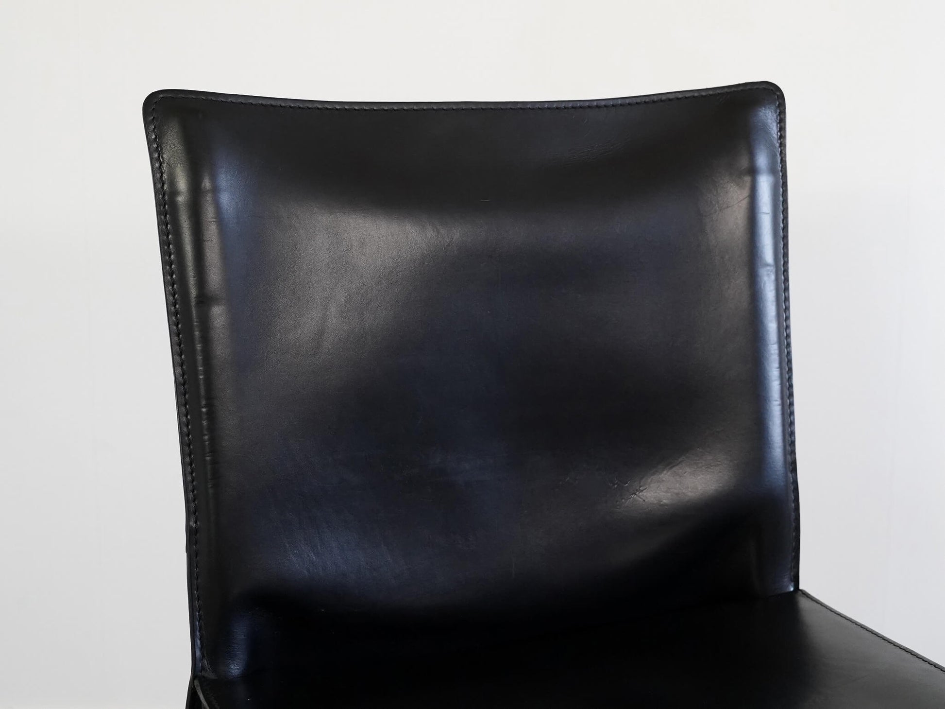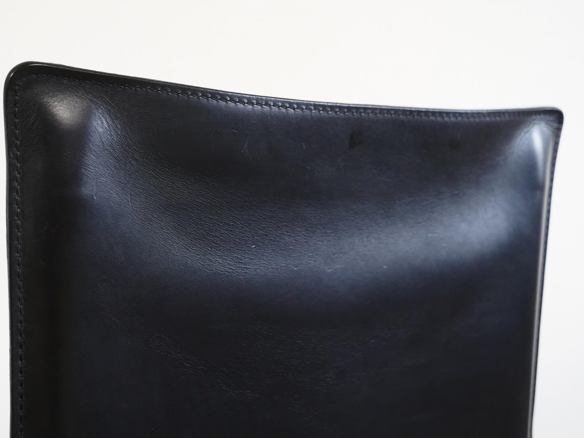 キャブチェア最大の特徴は、贅沢に使用された厚革。この上質な革を金属フレームに「被せる」という構造は、従来の椅子づくりの常識を覆す革新的な発想でした。背や座に生まれる絶妙なテンションが、包み込まれるような快適な座り心地を生み出しています。