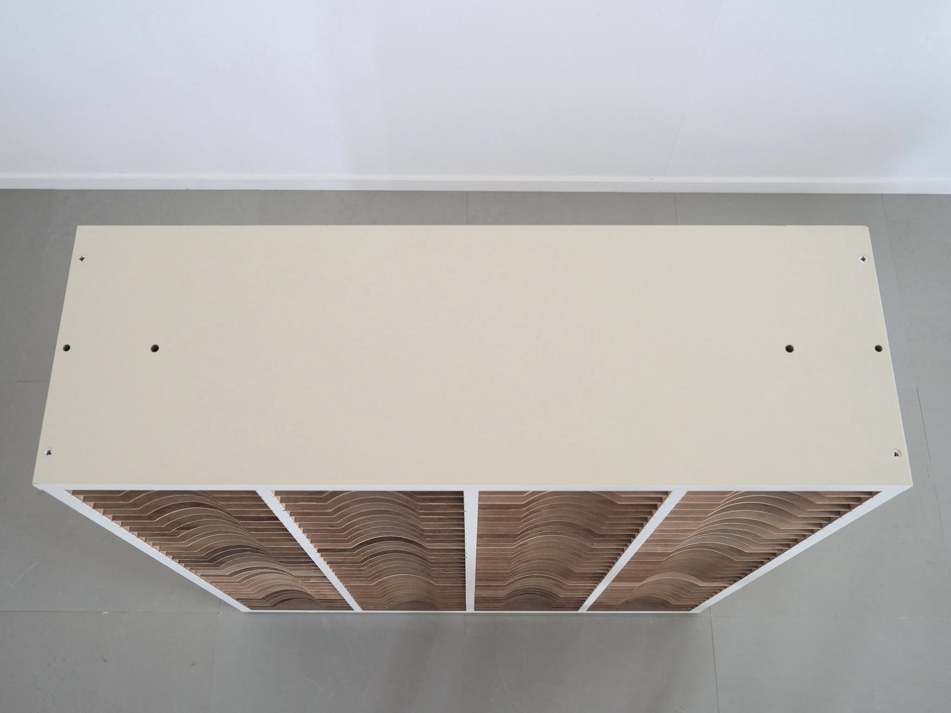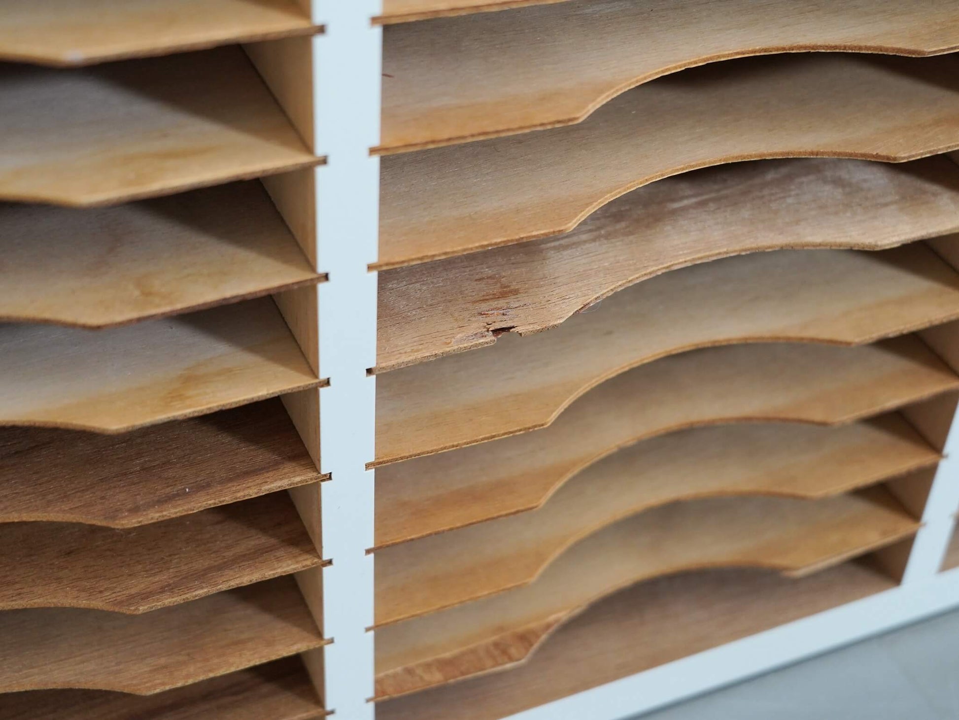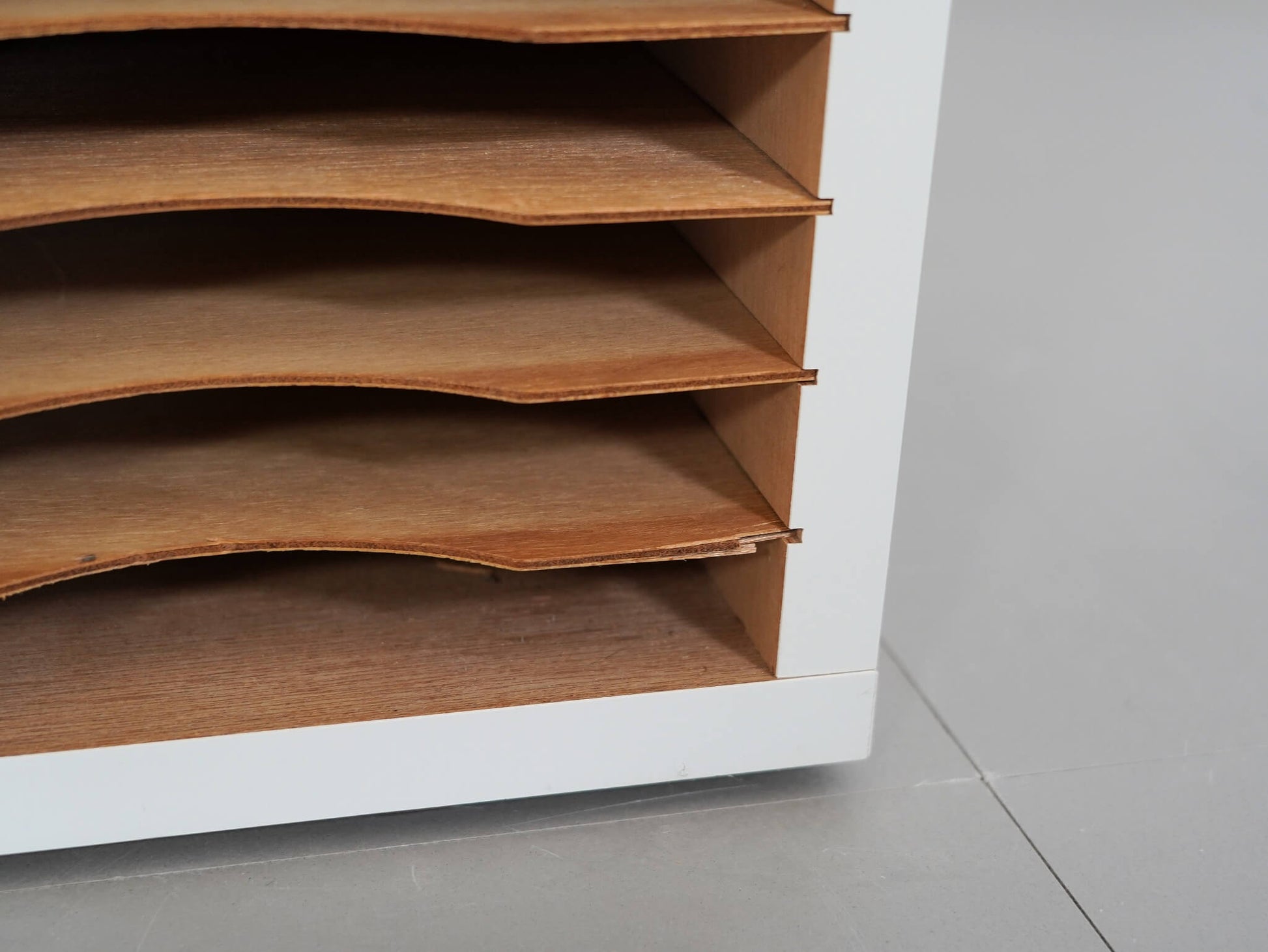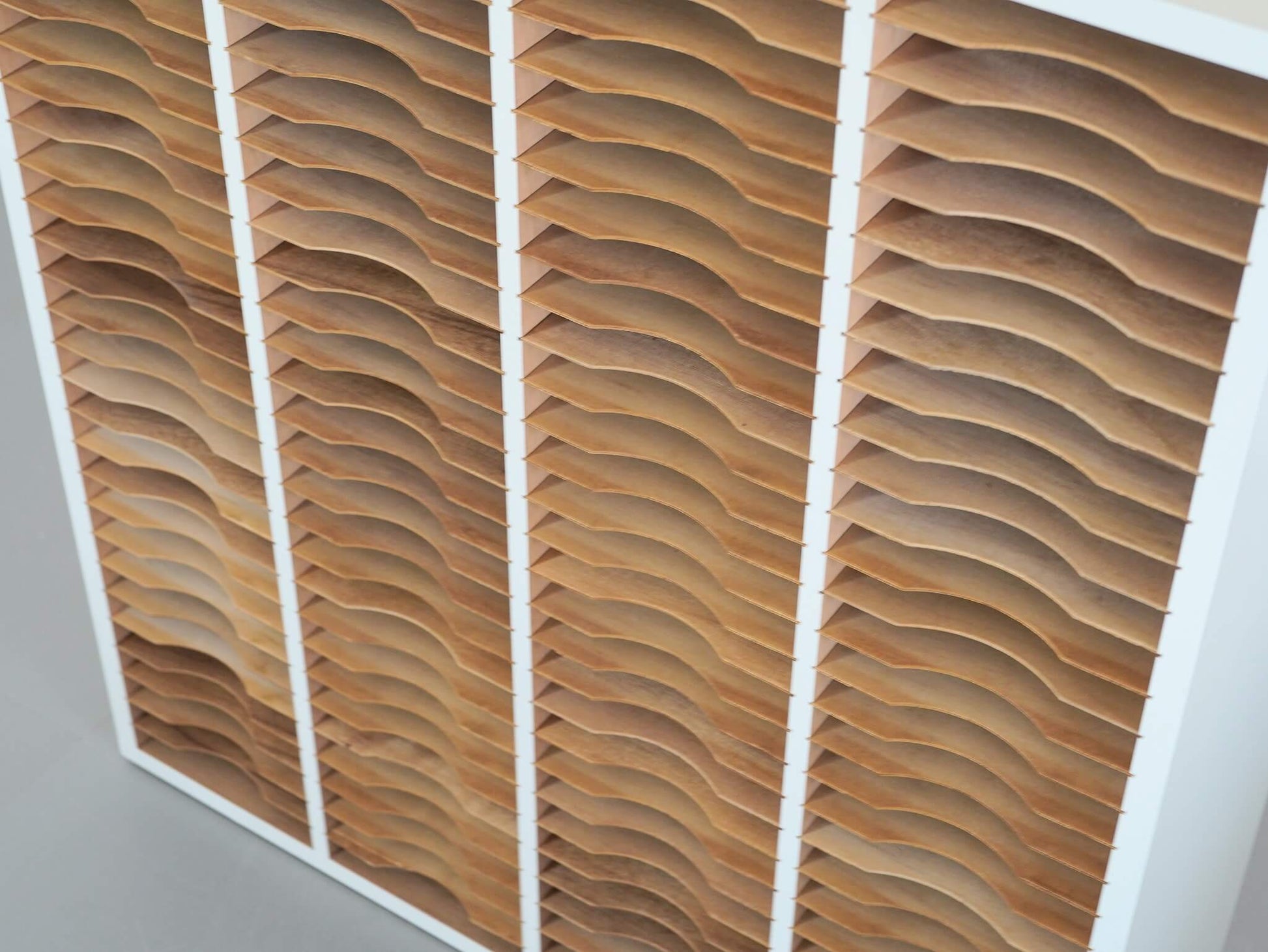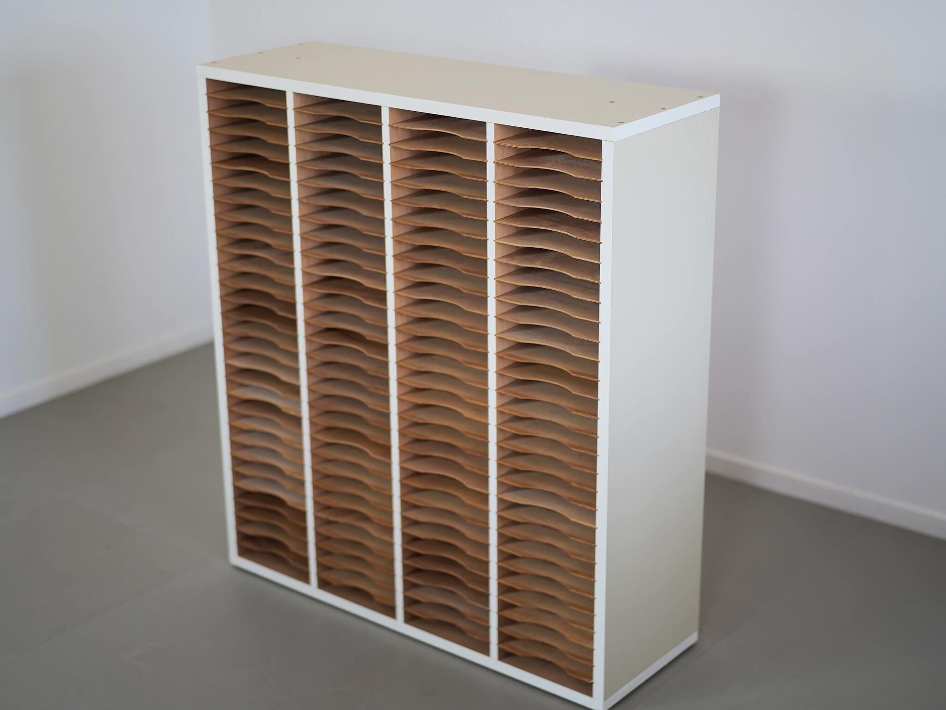 30段×4列に仕切られたデザインが目を惹く書類棚。