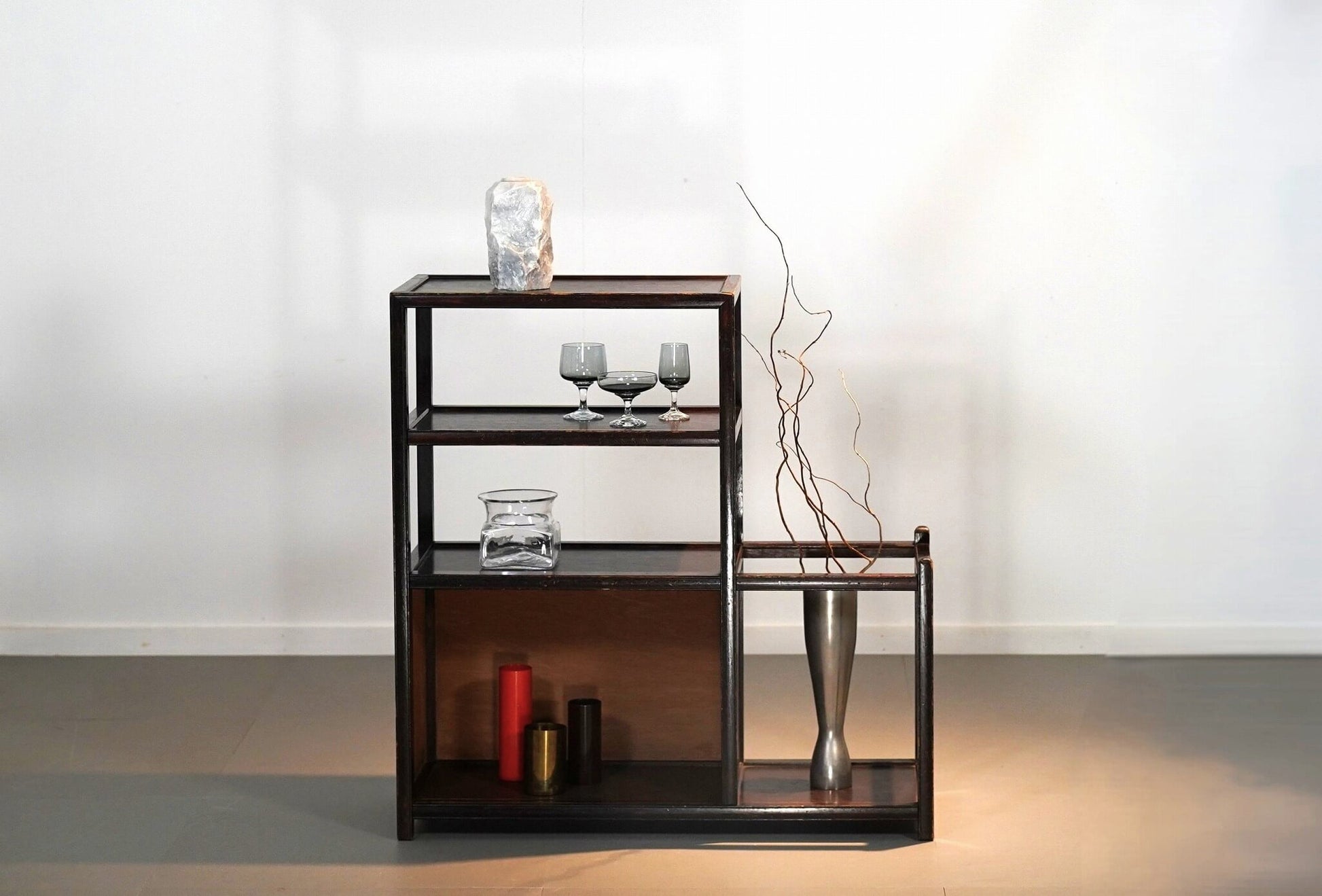繊細なラインが美しい、日本の古い飾り棚。