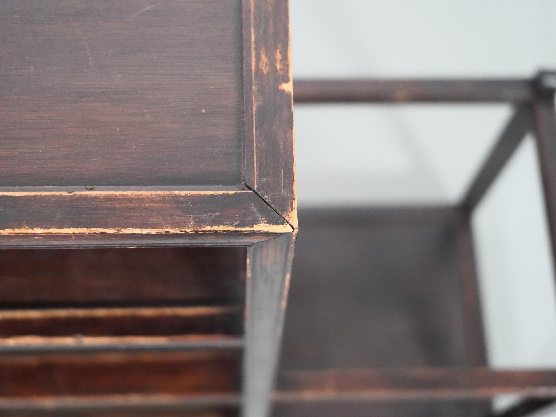 古いもののため、経年によるキズや割れなどがありますが、使用に差し支えるものではなく、古い家具ならではの味わいがあります。