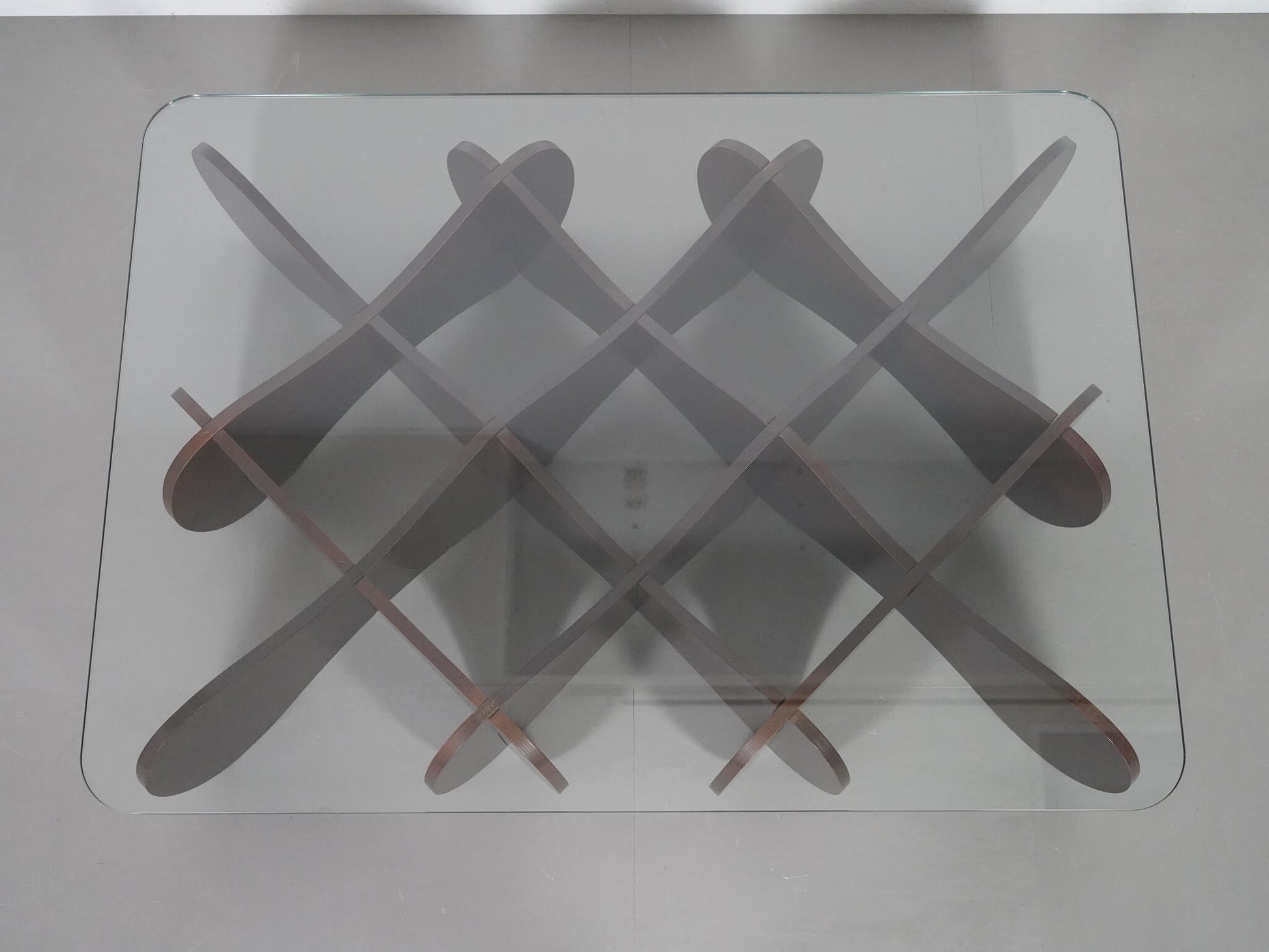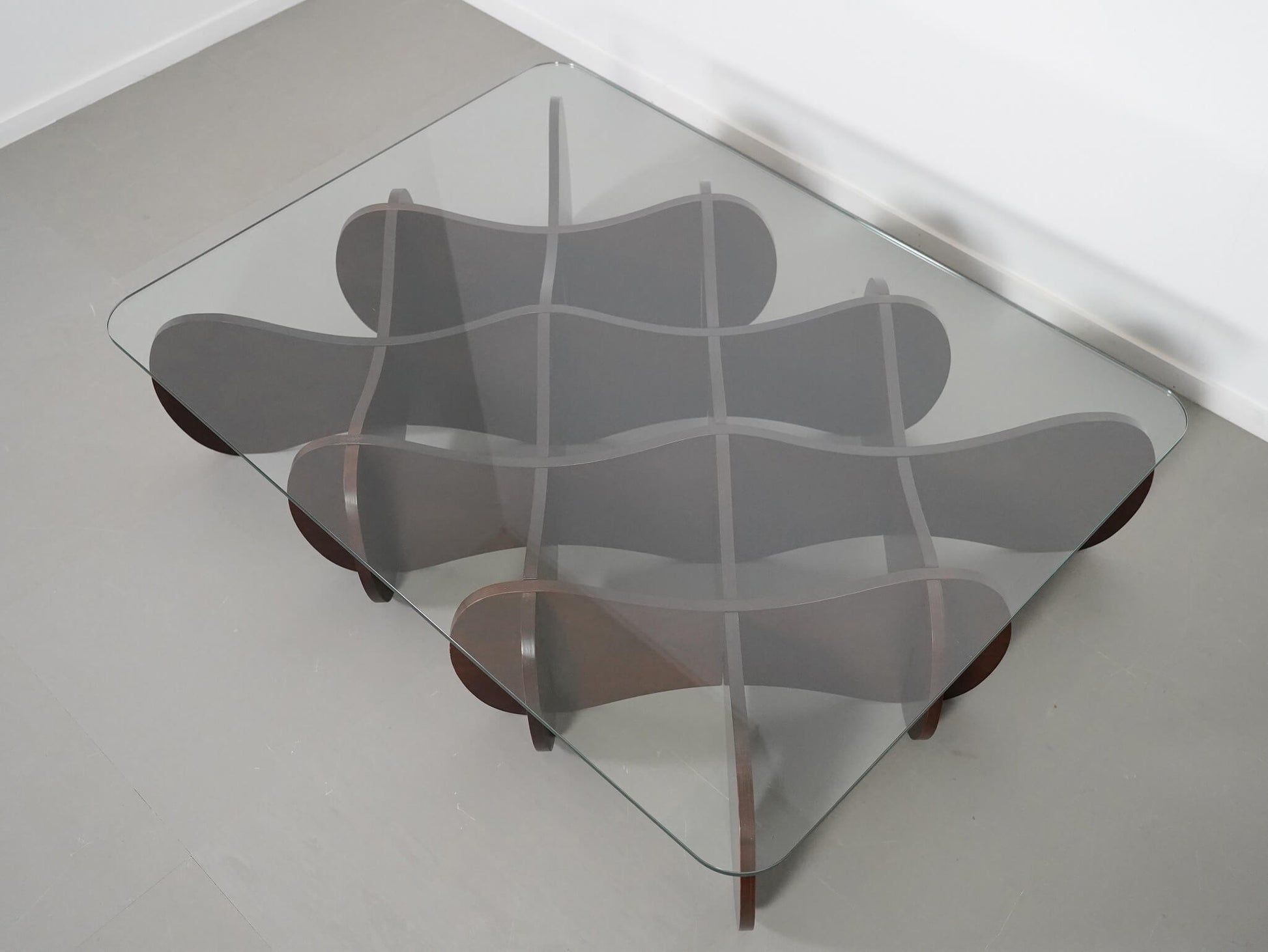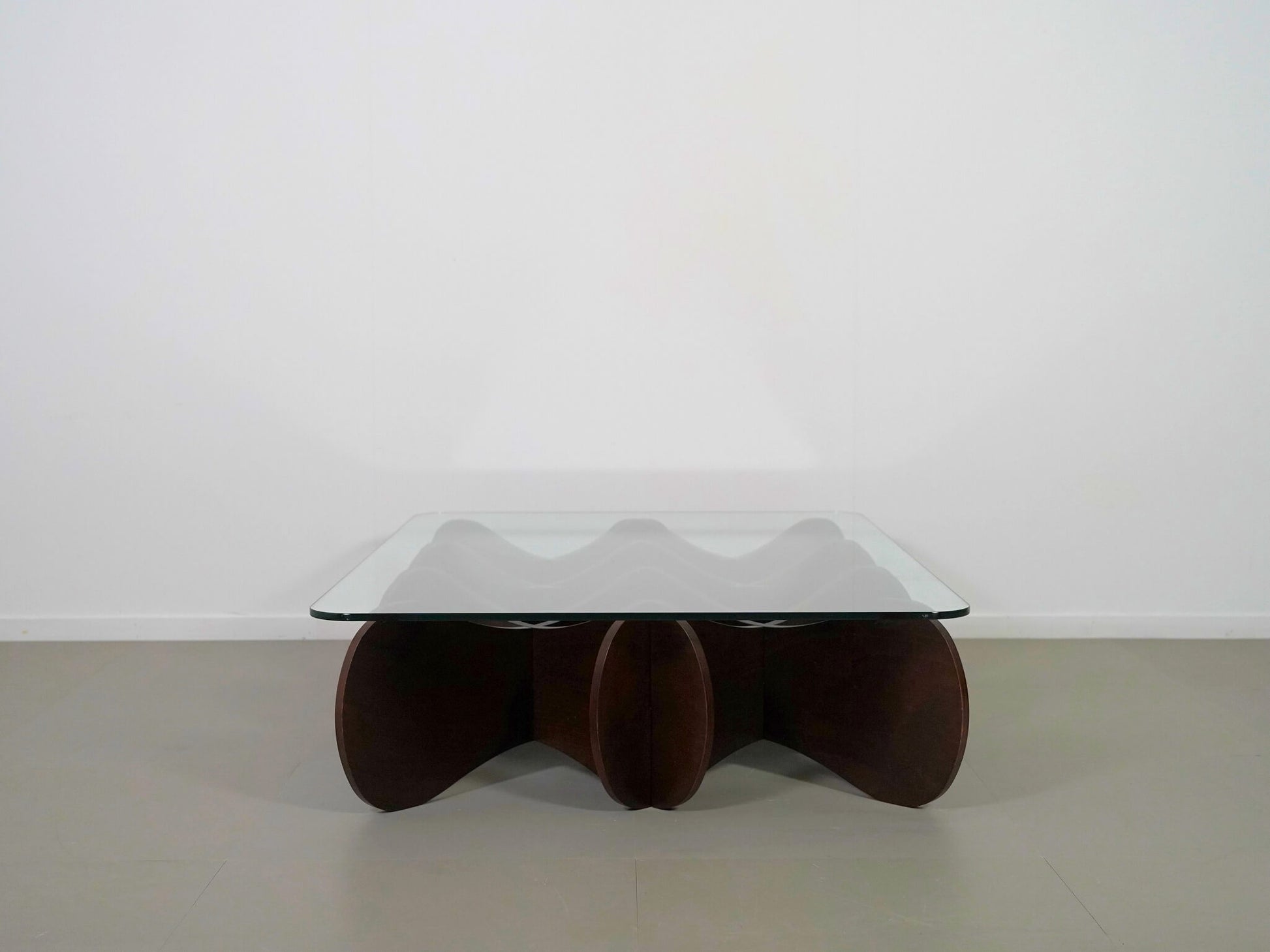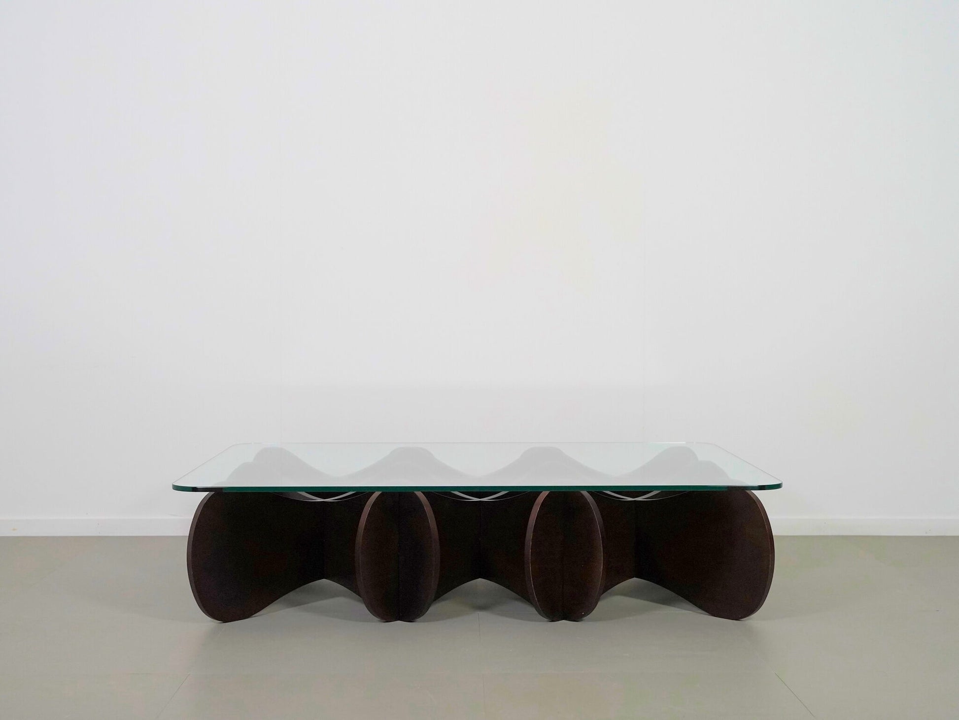 波状の板を交互に重ねた、他にはない独創的なデザインが魅力のE&Yの「マトリックステーブル」。ロンドンを拠点に活躍するデザイナー、アンドリュー・タイが2000年にデザインしました。
