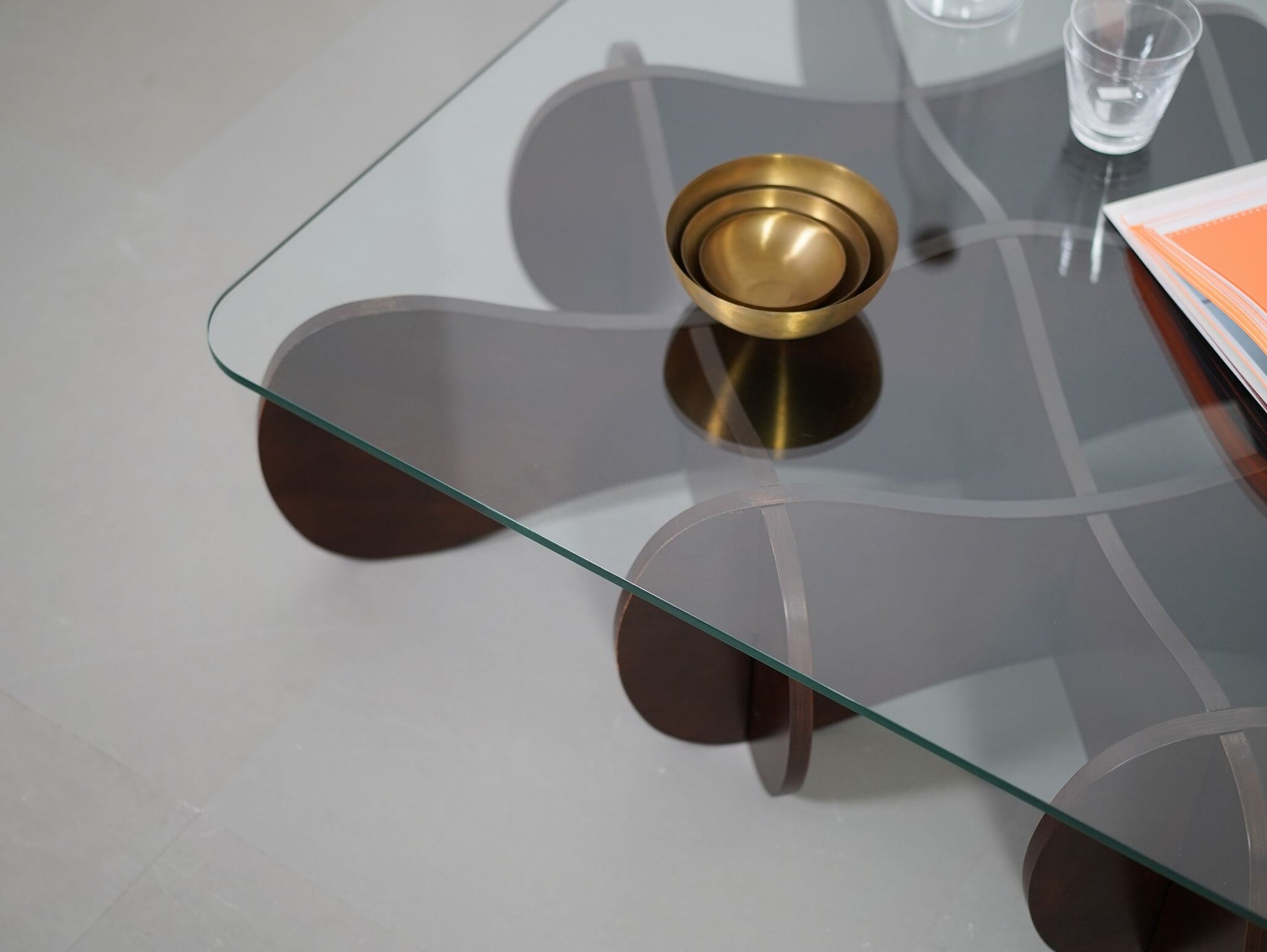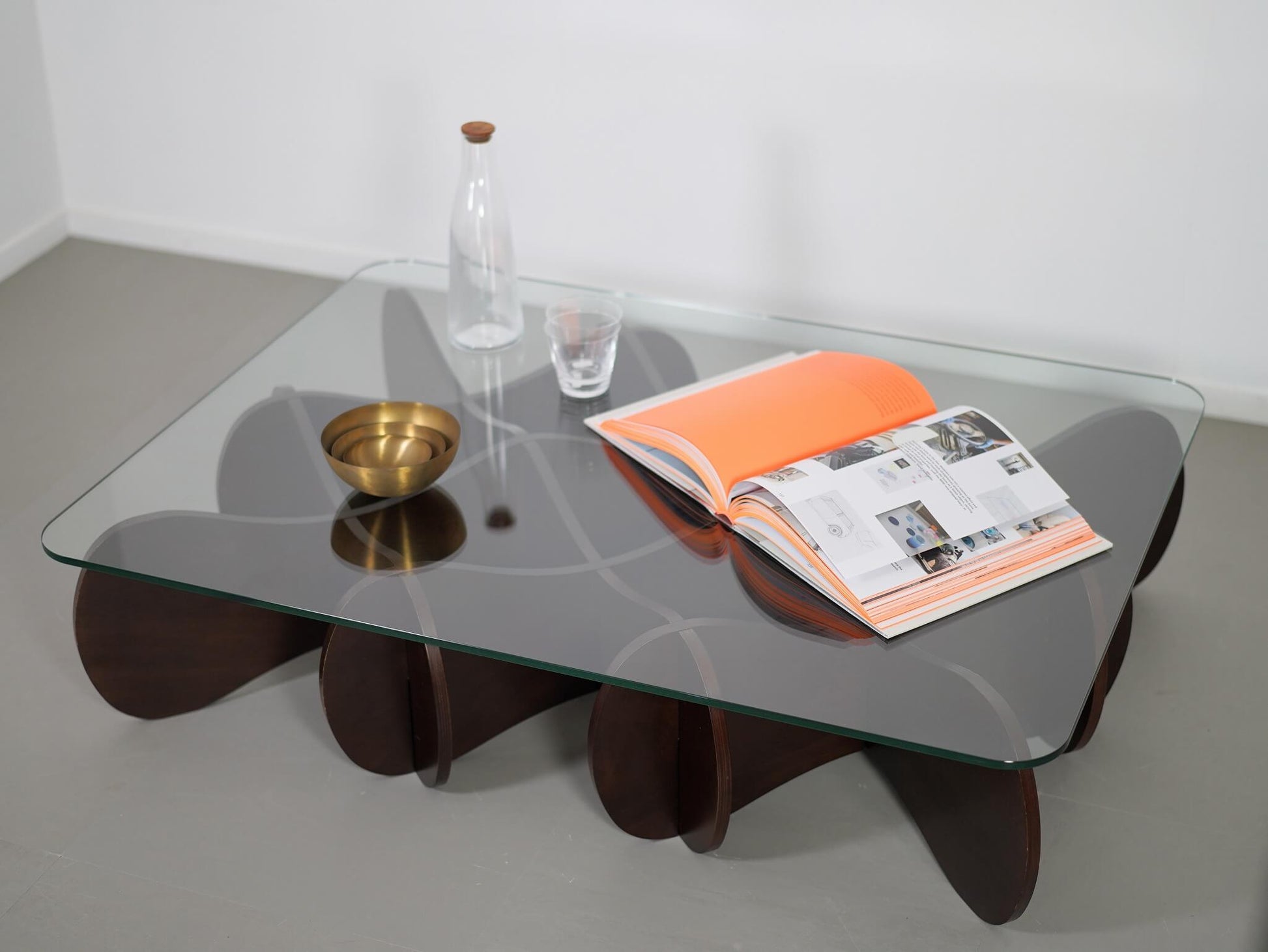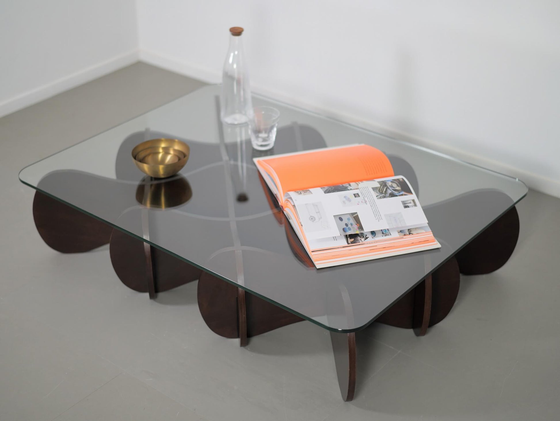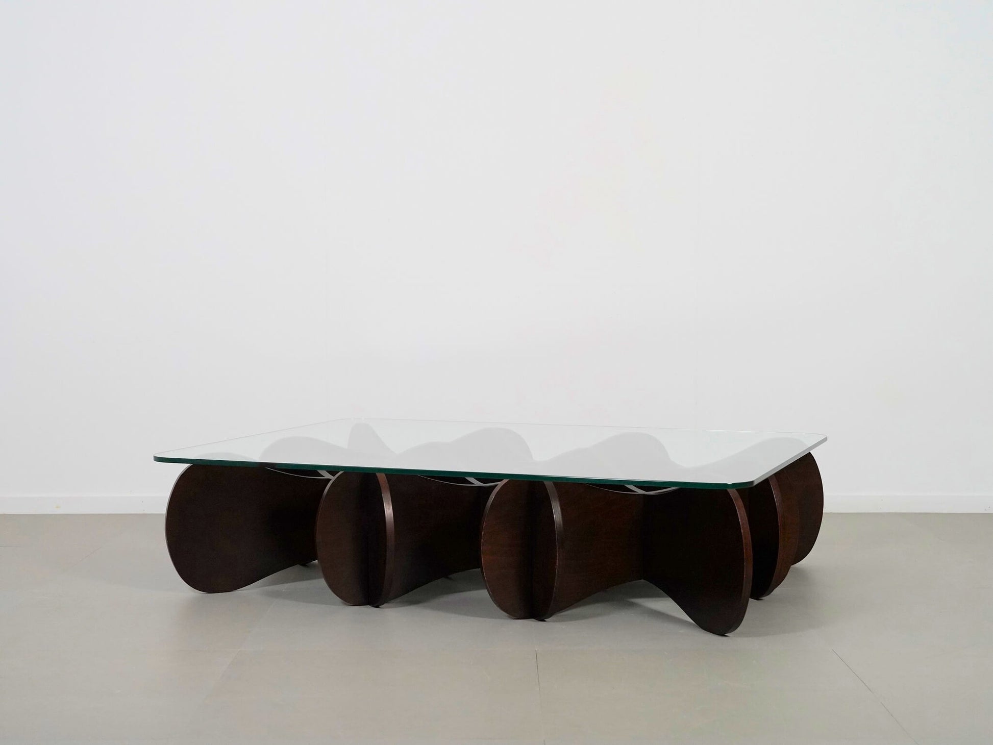 波状の板を交互に重ねた、他にはない独創的なデザインが魅力のE&Yの「マトリックステーブル」。ロンドンを拠点に活躍するデザイナー、アンドリュー・タイが2000年にデザインしました。