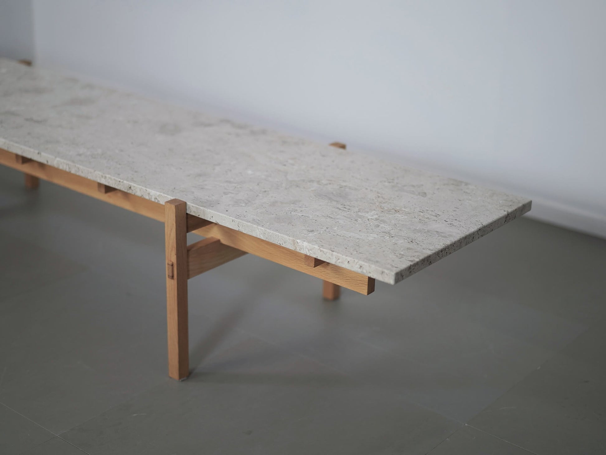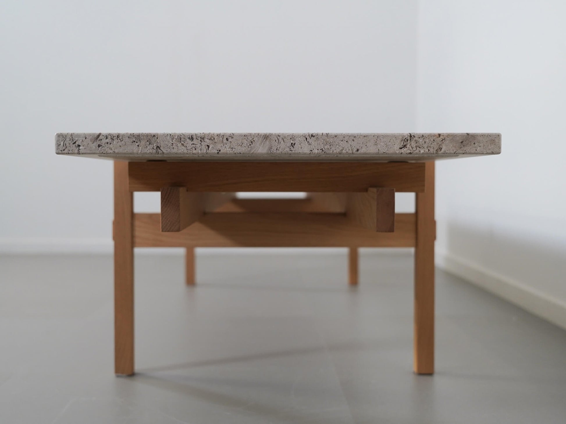 天板には、ポール・ケアホルムのミニマリズムから着想を得た大理石を採用し、シンプルでありながら品格のある佇まいに。