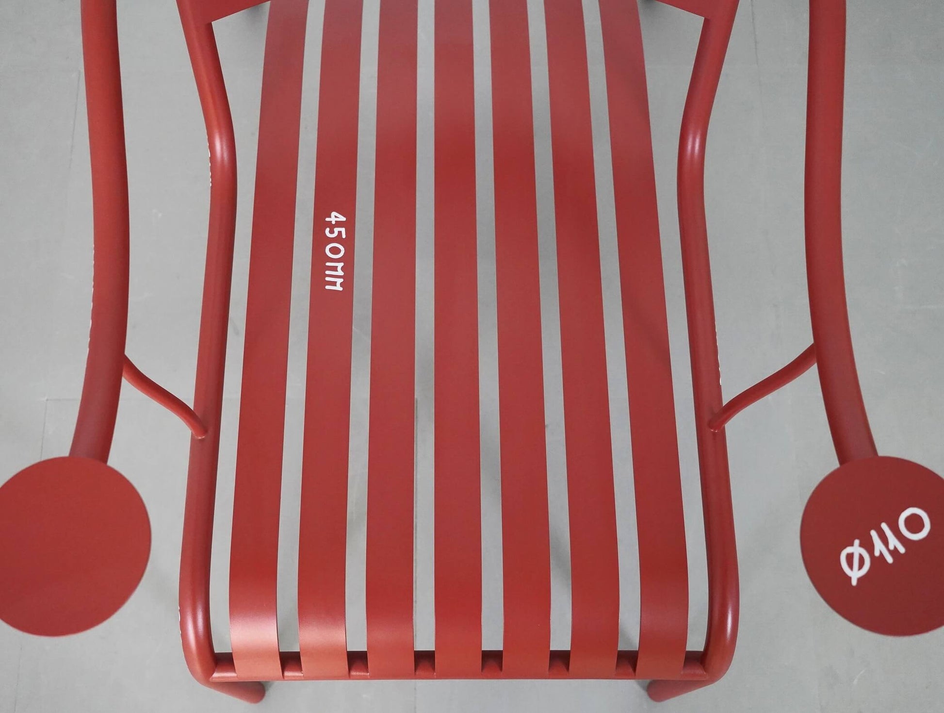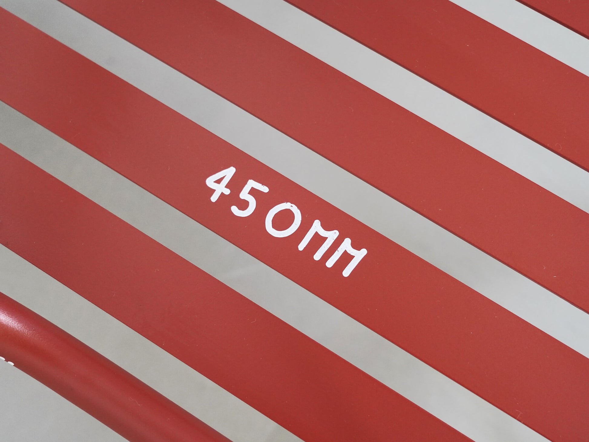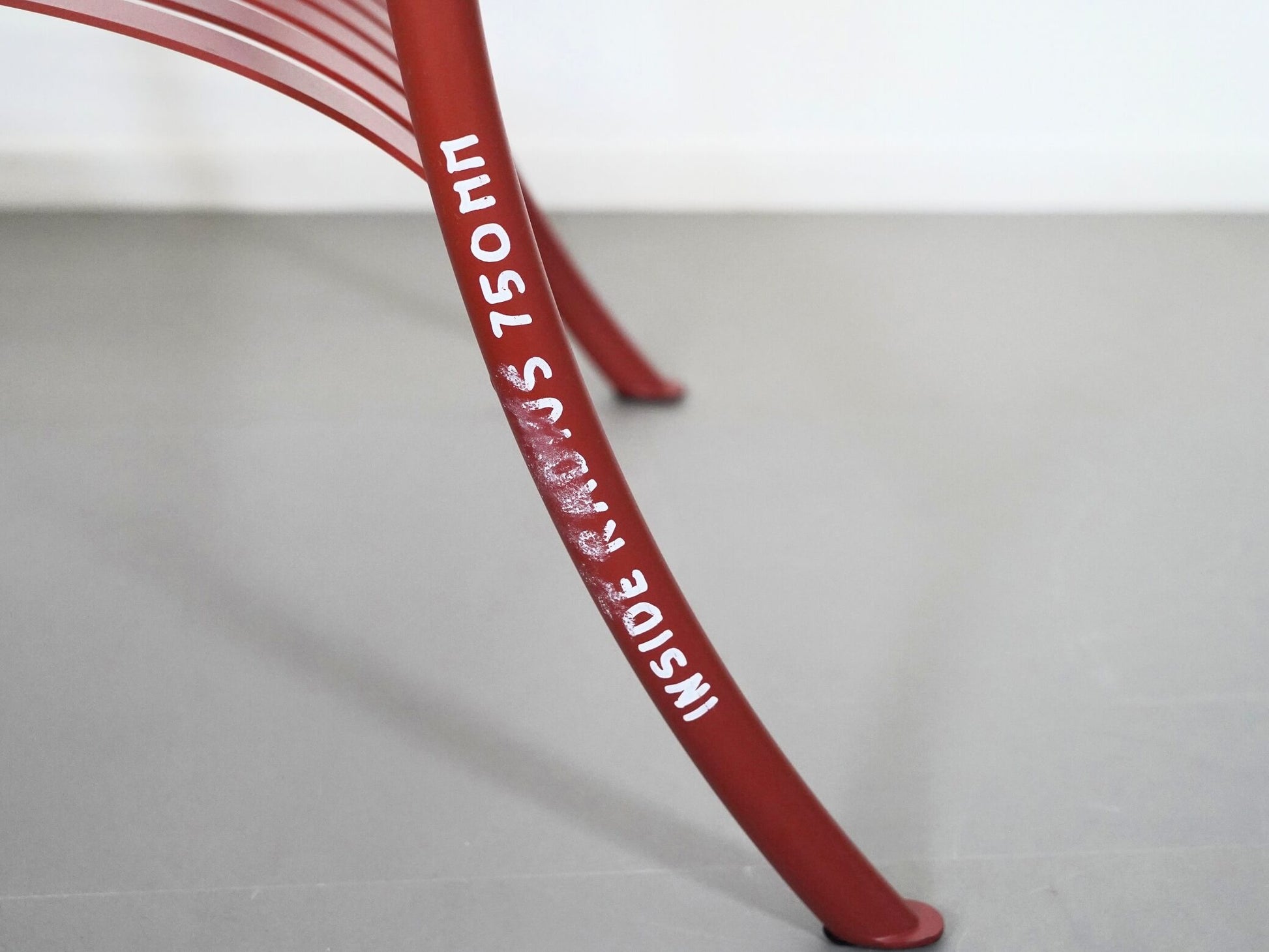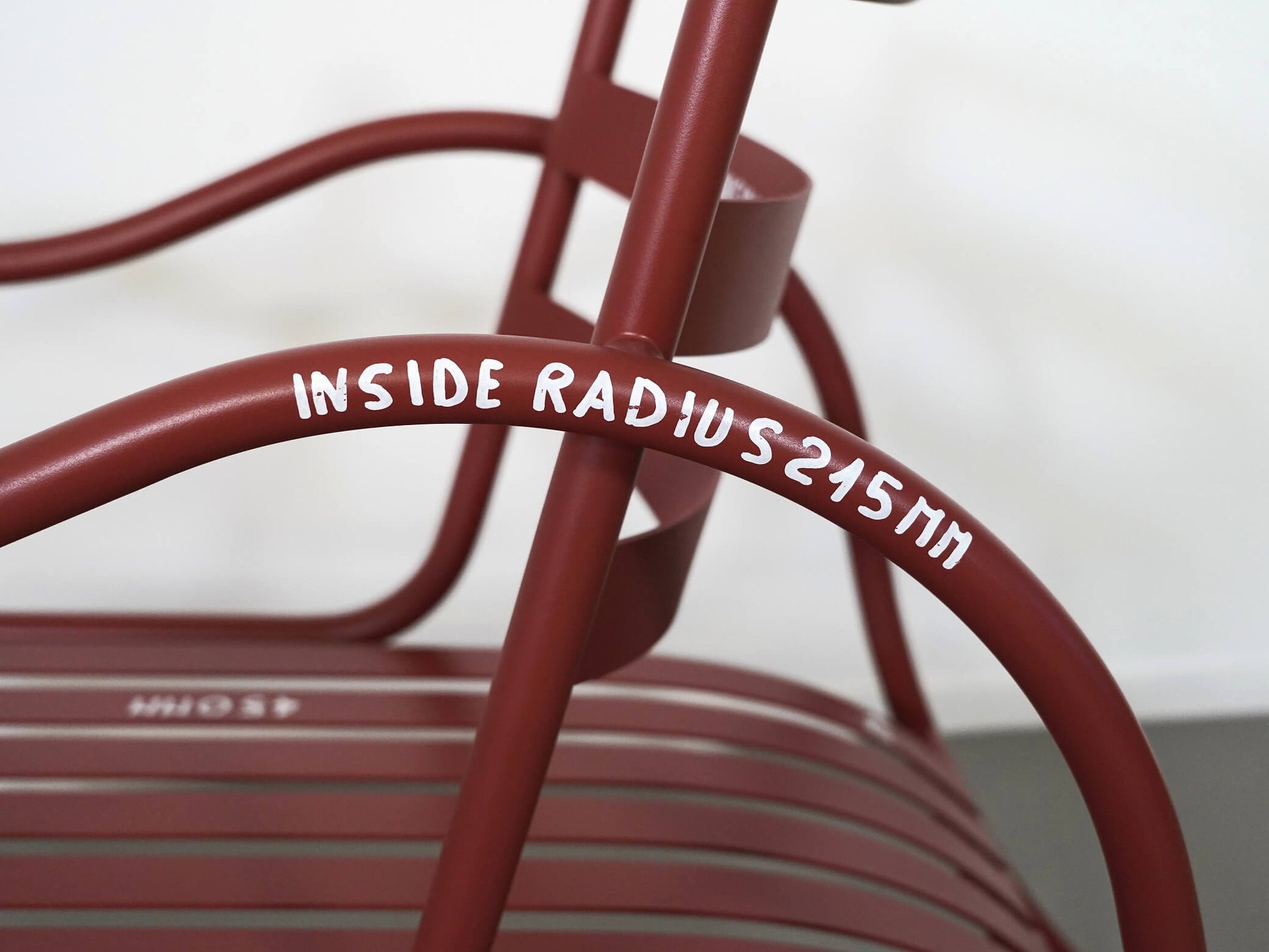 フレームには寸法が書き込まれており、それがこの椅子ならではの唯一無二の存在感を放っています。一部消えている箇所もありますが、多くはしっかりと残っており、全体として非常に良好なコンディションです。