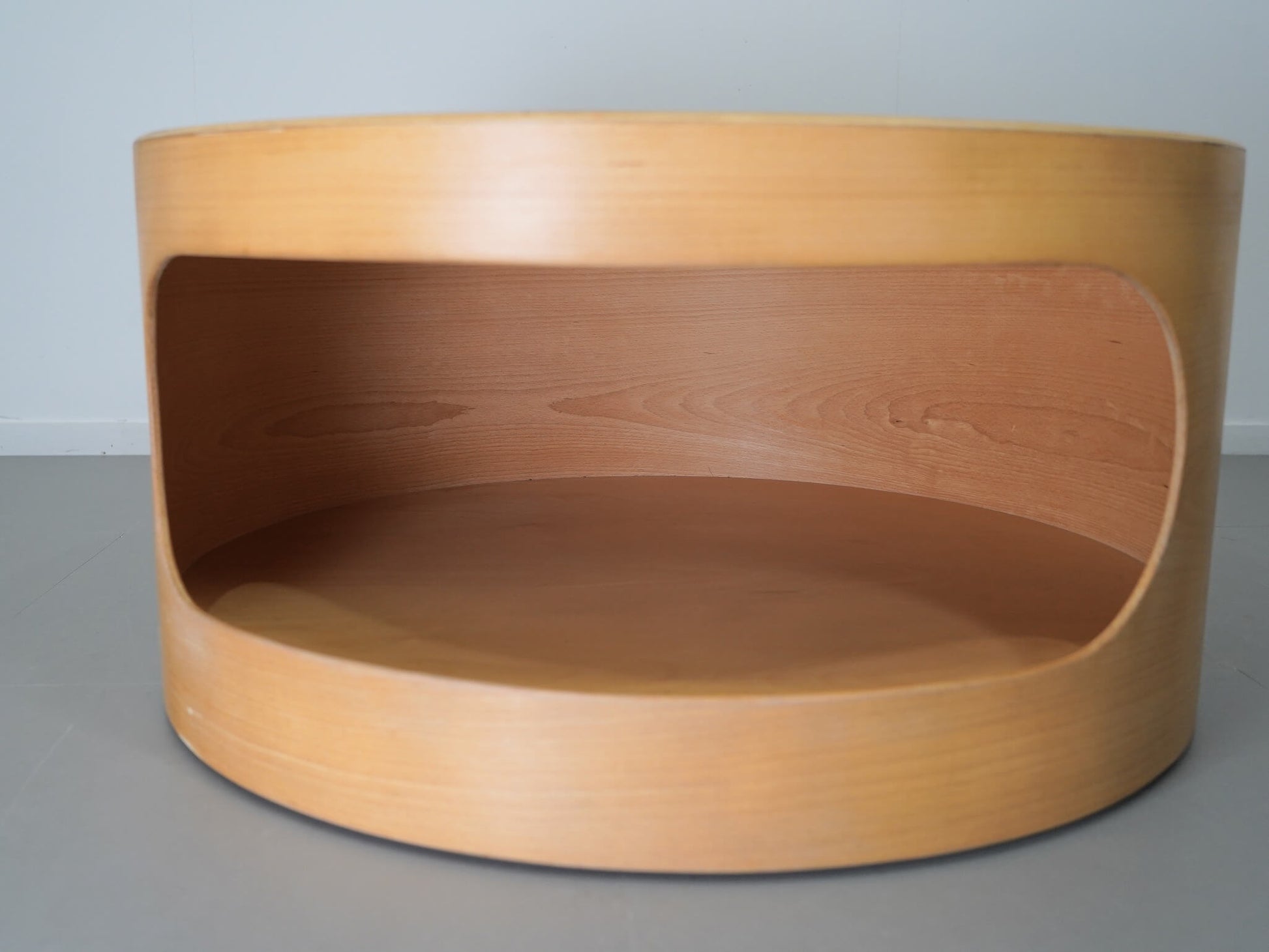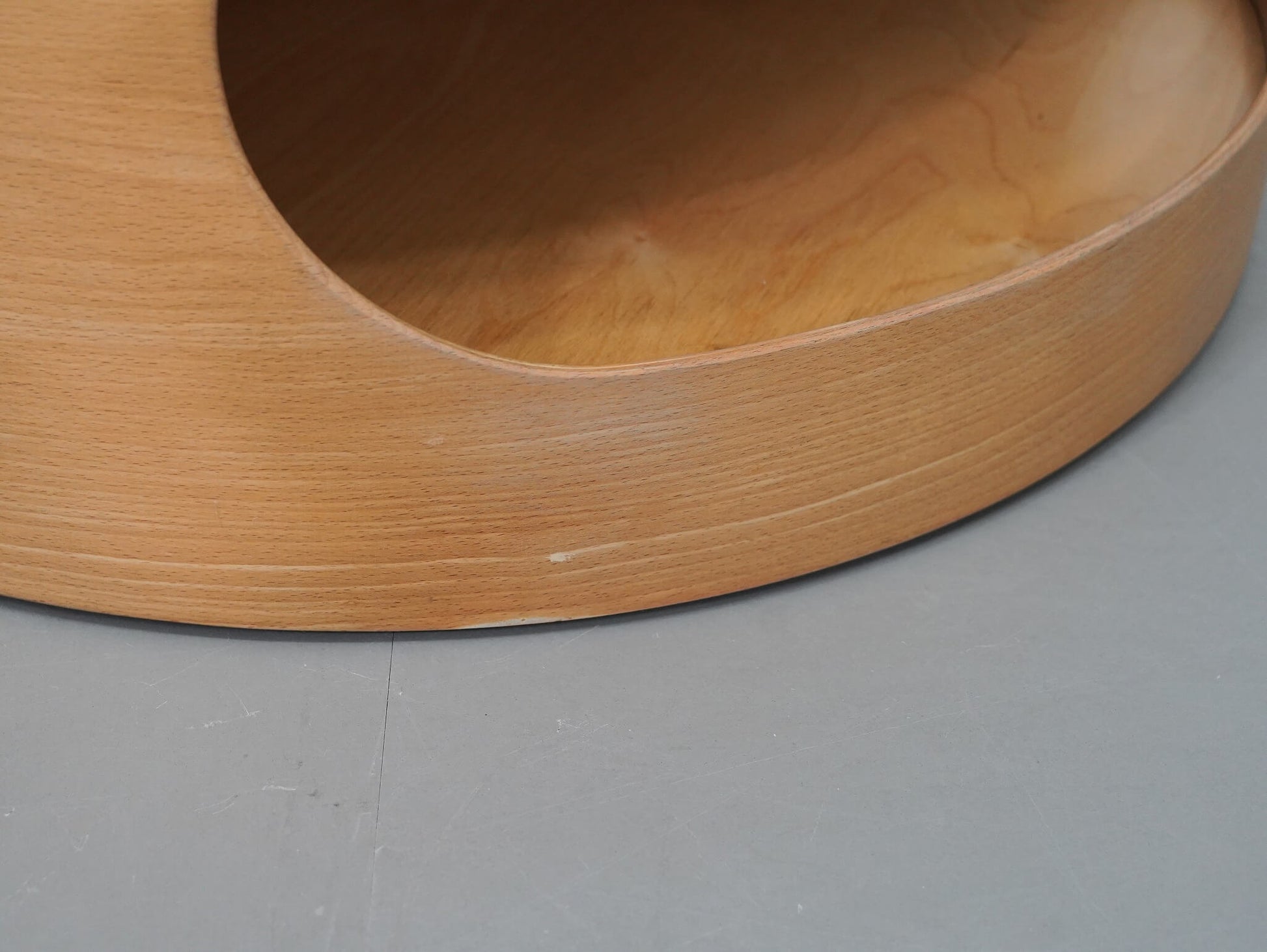 曲げ木加工を施した、やわらかな曲面が印象的なコーヒーテーブル。底面にはキャスターが隠されており、収納も備えた実用性も魅力です。